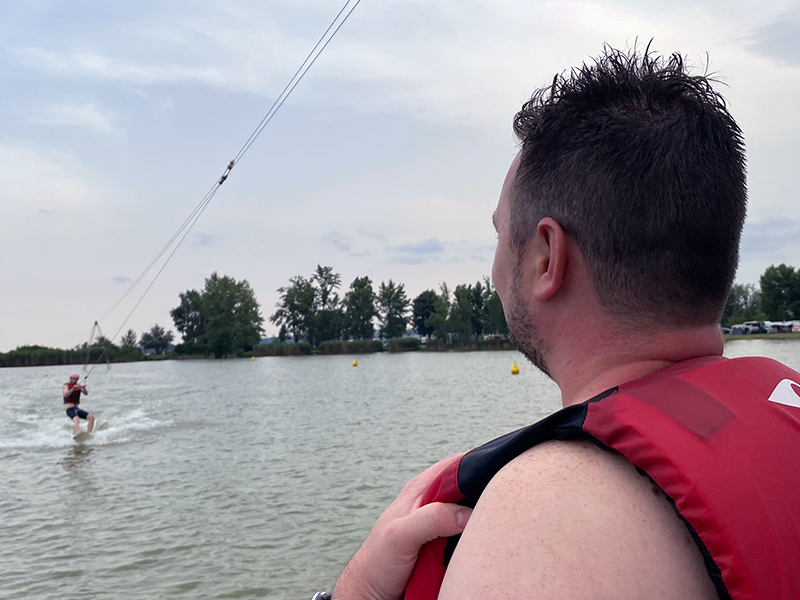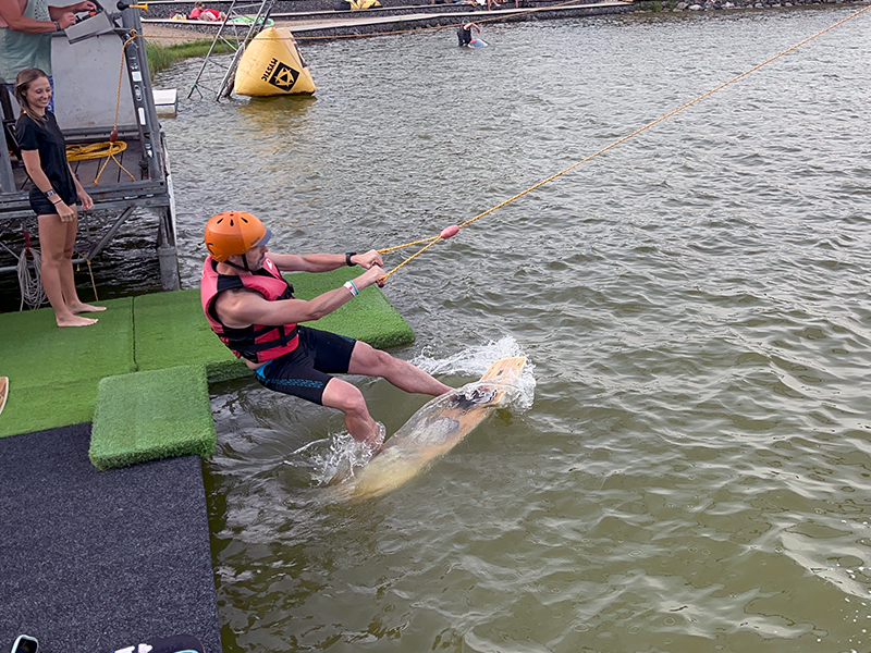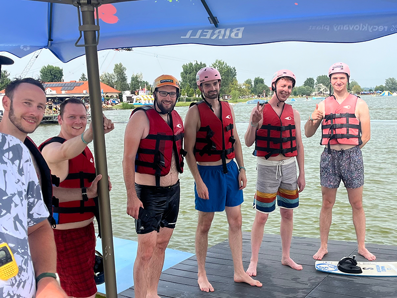 Hlavní atrakcí našeho víkendu byl wakeboarding. Pro většinu z nás to byla první zkušenost, pro někoho příležitost zdokonalit své dovednosti. Každopádně, nikdo nezůstal na suchu! Pod vedením zkušených a trpělivých instruktorů jsme se vydali napřed na malý výukový vlek. Brzy si ale někteří troufli už na klasický velký vlek, kde si své vývojářské mozky pořádně propláchli novomlýnskou vodou.