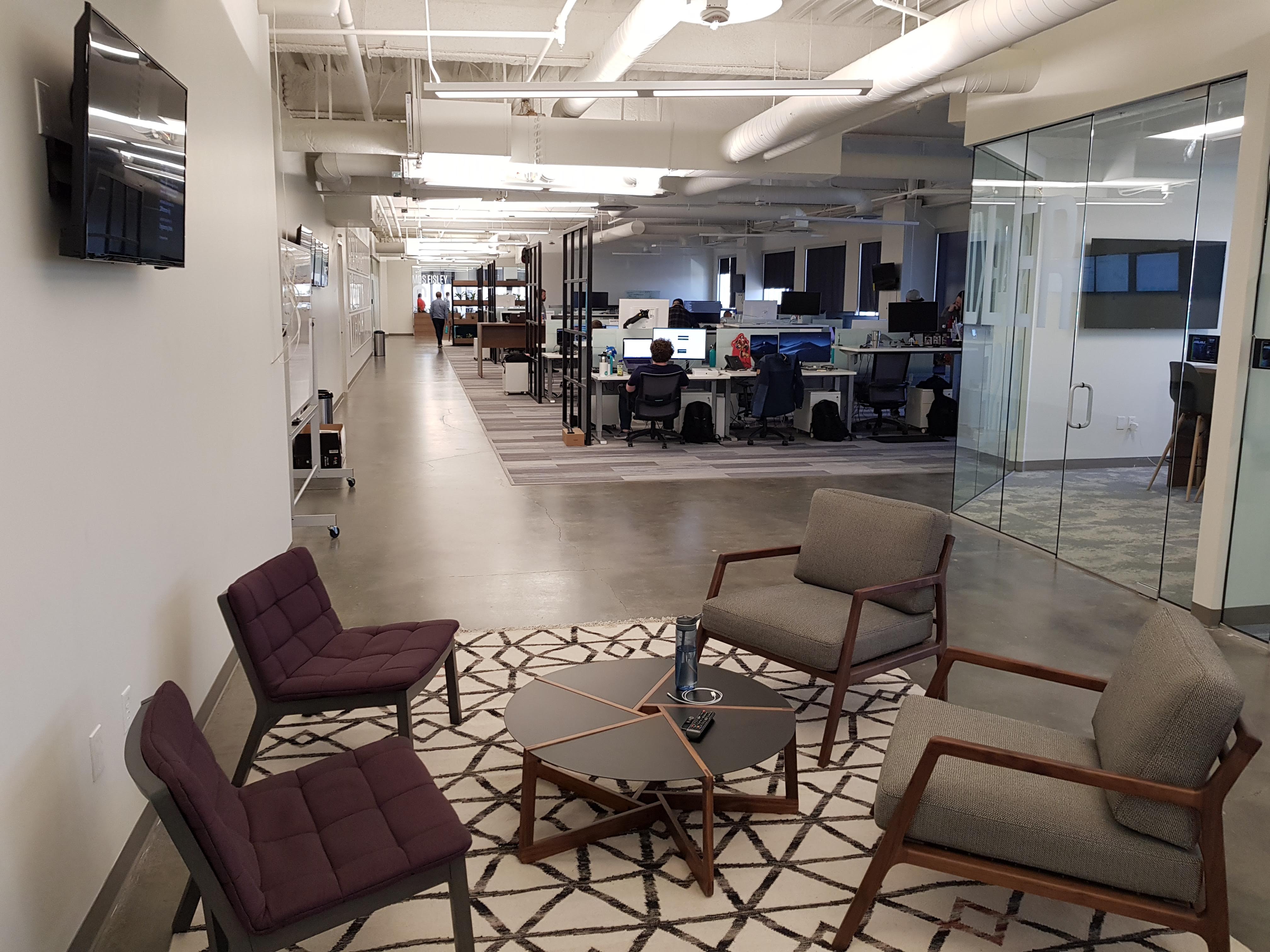 kanceláře společnosti Divvy s logem společnosti v popředí